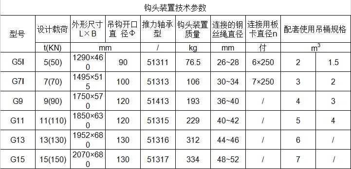 鉤頭及連接裝置,簡稱為鉤頭裝置。 該產(chǎn)品結構簡單,使用性能單一。零件全部由鍛件加工而成,鋼絲繩連接采用了兩種型式,其中5t、7t采用不偏心護繩環(huán),板卡連接;9t" />