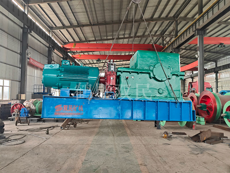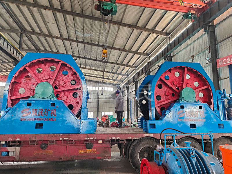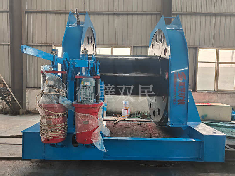 本絞車主要用于煤礦、金屬礦和非金屬礦豎井井筒掘進(jìn)時懸吊吊盤、水泵、水管、注漿泵、風(fēng)筒等掘進(jìn)設(shè)備和張緊穩(wěn)繩,該絞車系雙鋼絲繩懸吊。將減速機(jī)上的差動手把放在差動位置,若張緊穩(wěn)繩,可使兩根穩(wěn)繩的張緊力保持相等;若懸吊水管、注漿管、風(fēng)筒等管類設(shè)備,可保證其被懸吊管類設(shè)備與地面保持垂直的狀態(tài)。如果懸吊吊盤等盤狀設(shè)備,需將其差動手把放在直通位置,才能實(shí)現(xiàn)兩繩繩速的一致。