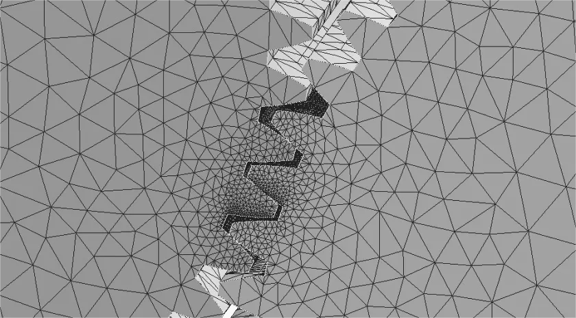在 SolidWorks 中對同步齒輪進行建模并調整,確保同步齒輪不會出現干涉。為了提高仿真精度和數據的可靠性,對靜強度仿真過程中參與嚙合的幾對輪齒表面網格化。齒面網格細化模型如圖5所示。